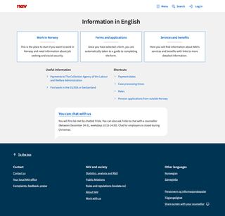 Flere sider har fått engelsk versjon. Over 660 sider og vedlegg til hovedmålgruppene (privatperson, arbeidsgiver og samarbeidspartner) er arkivert.